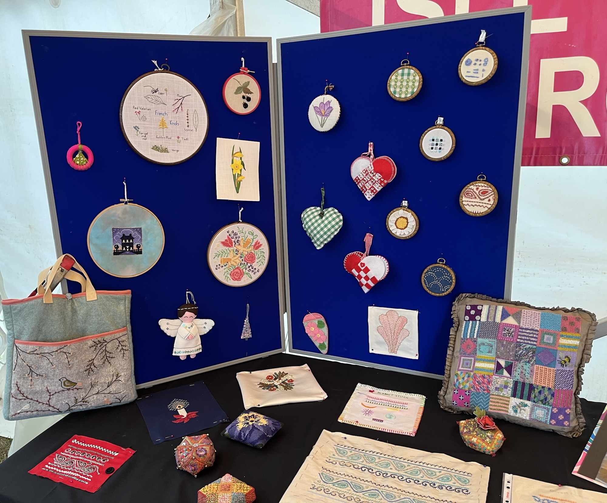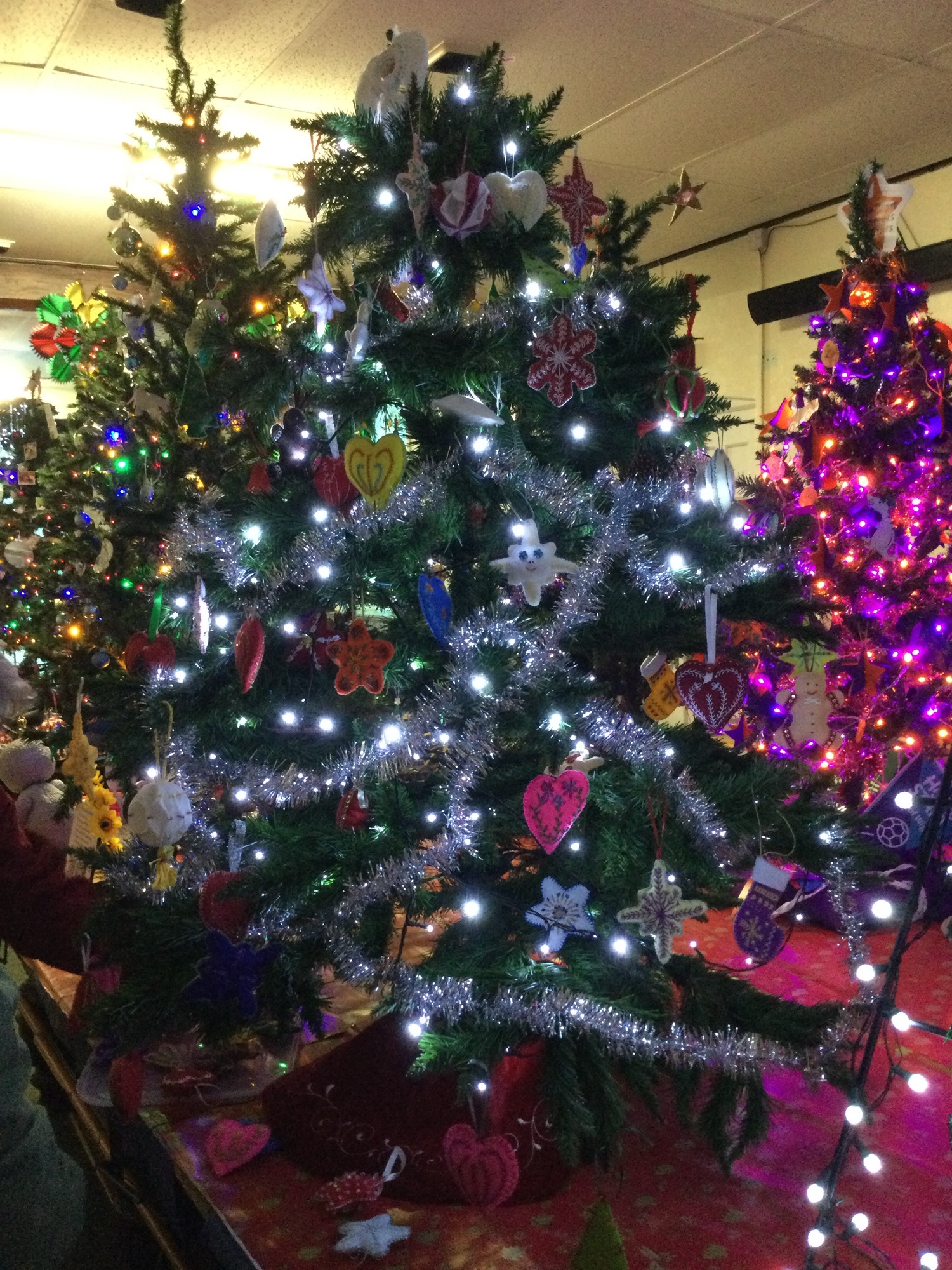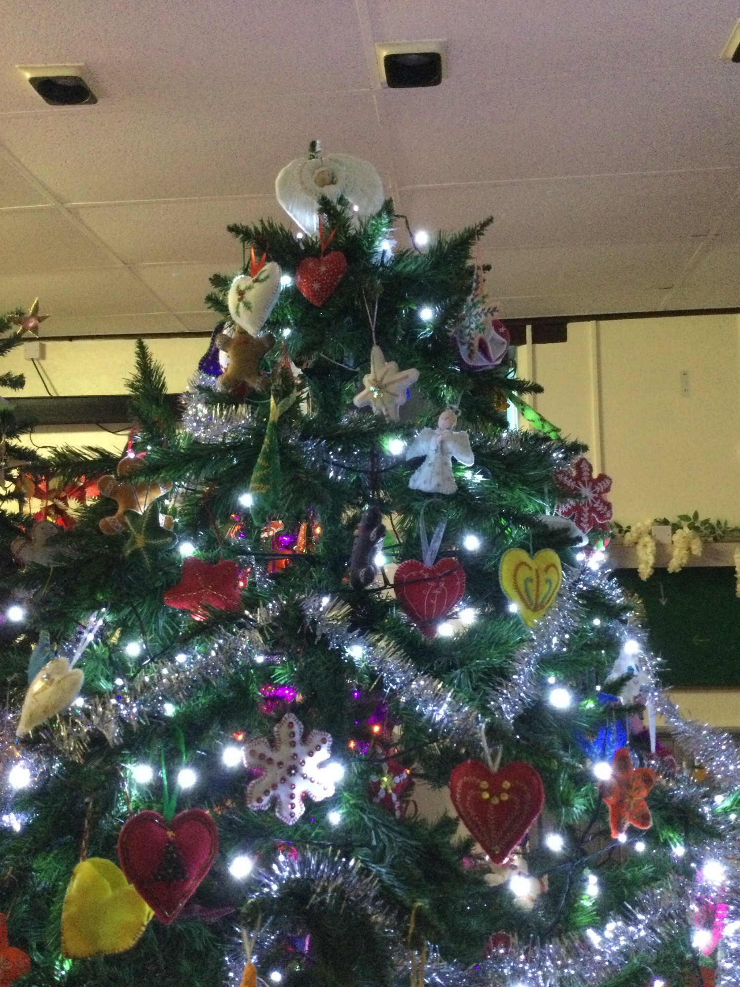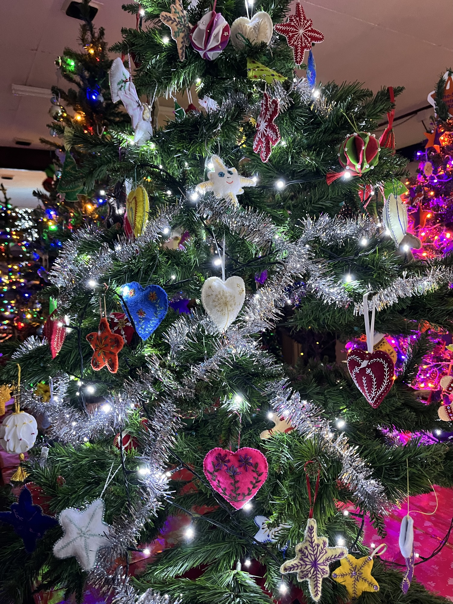 The IOW Embroiders’ Christmas tree is now on display at The Reading Rooms in Brighstone. We made over 120 felt decorations and as you can see it looks stunning thanks to the efforts of Carys, Debbie and Sue.
