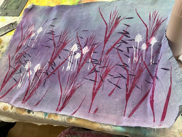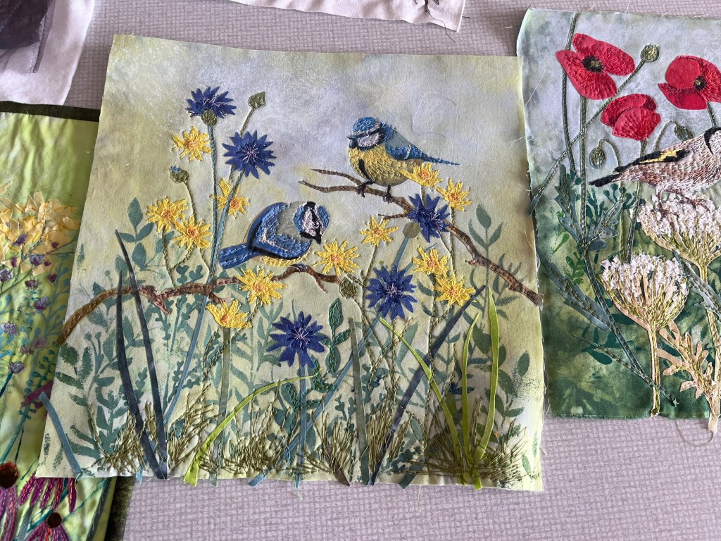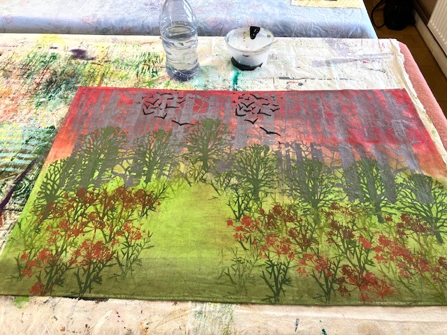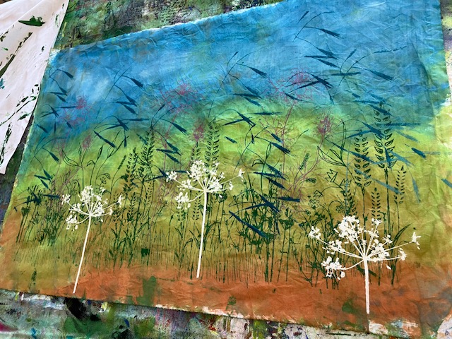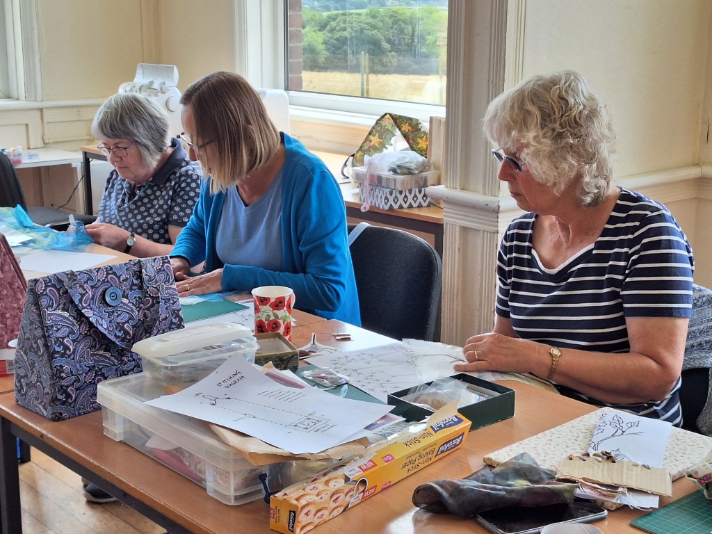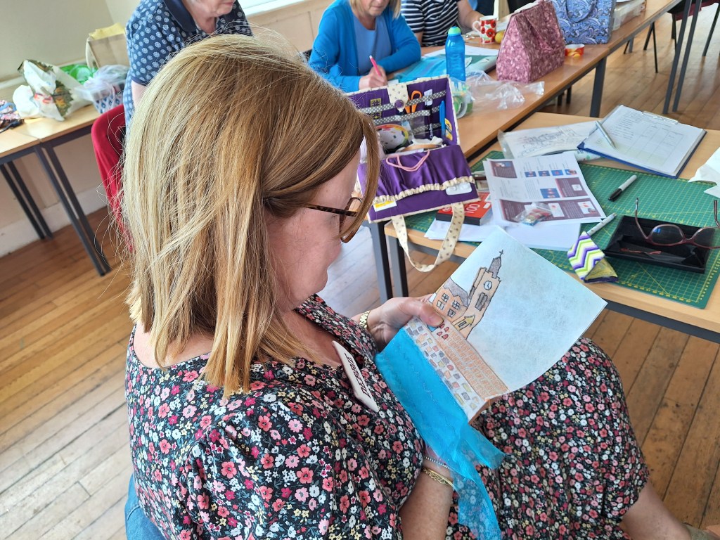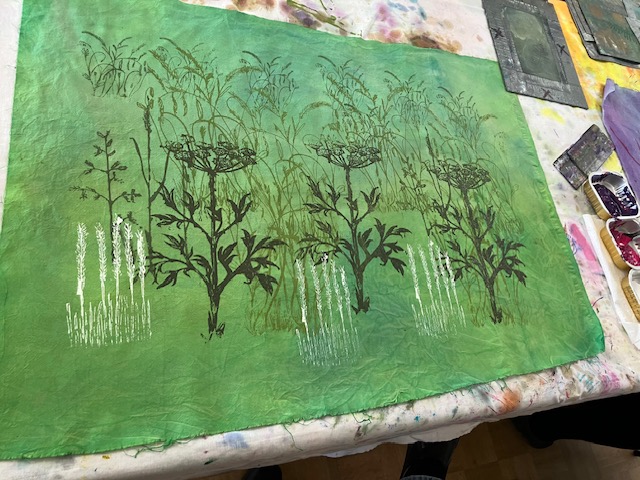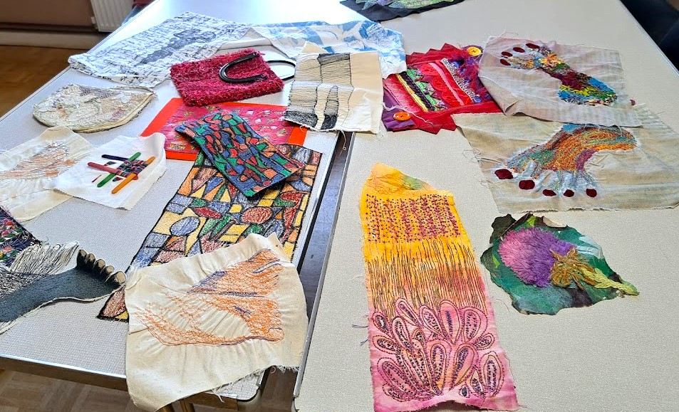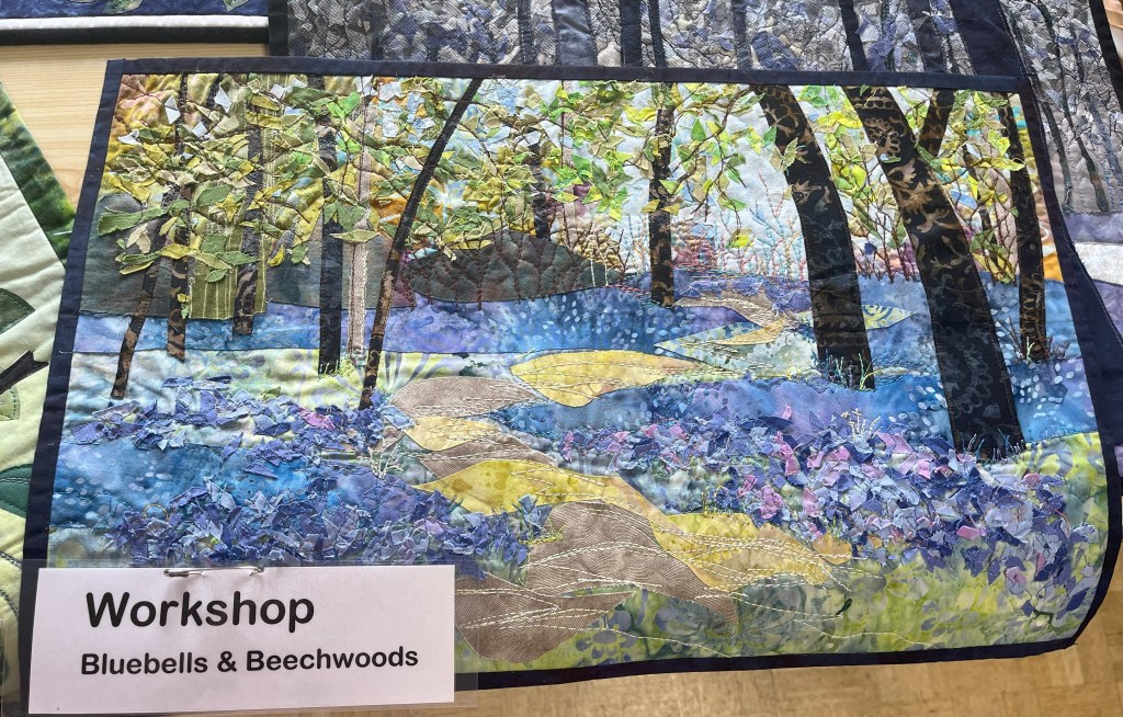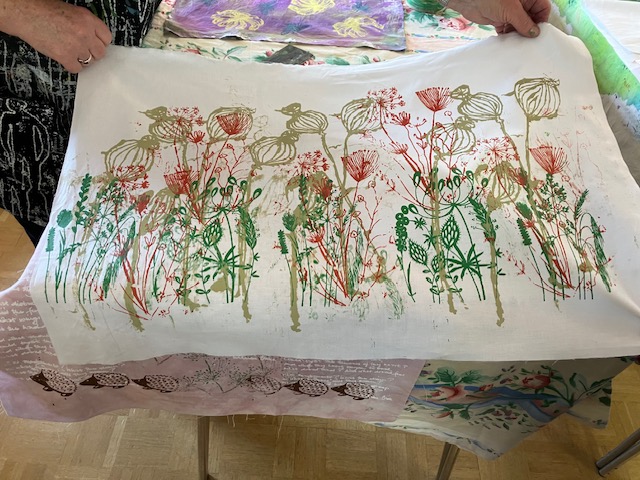 Anne is an artist who creates hand-painted textile art by combining paint and textiles with free machine embroidery. She gave us a fascinating talk and brought along some of her stunning pieces to inspire us!