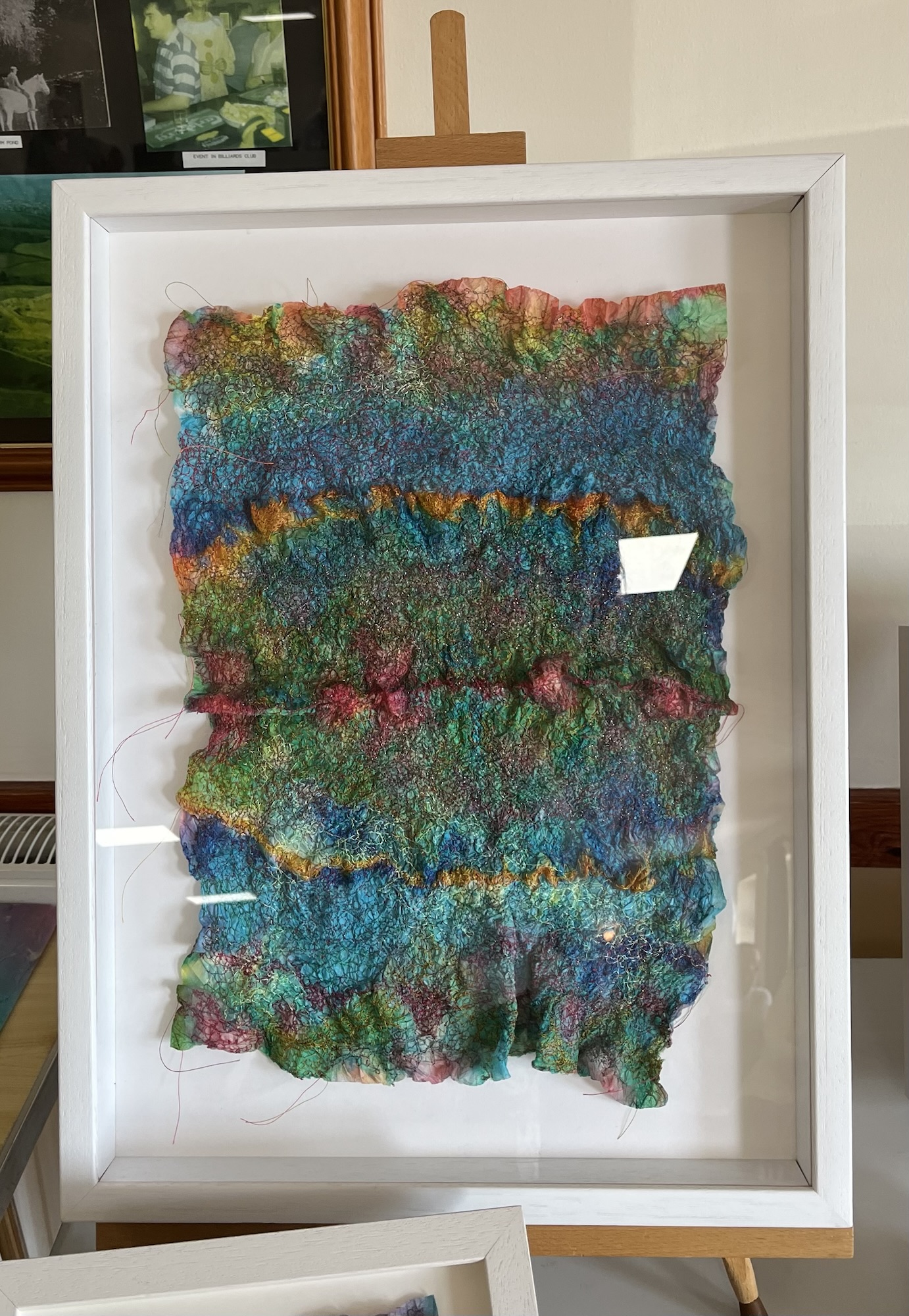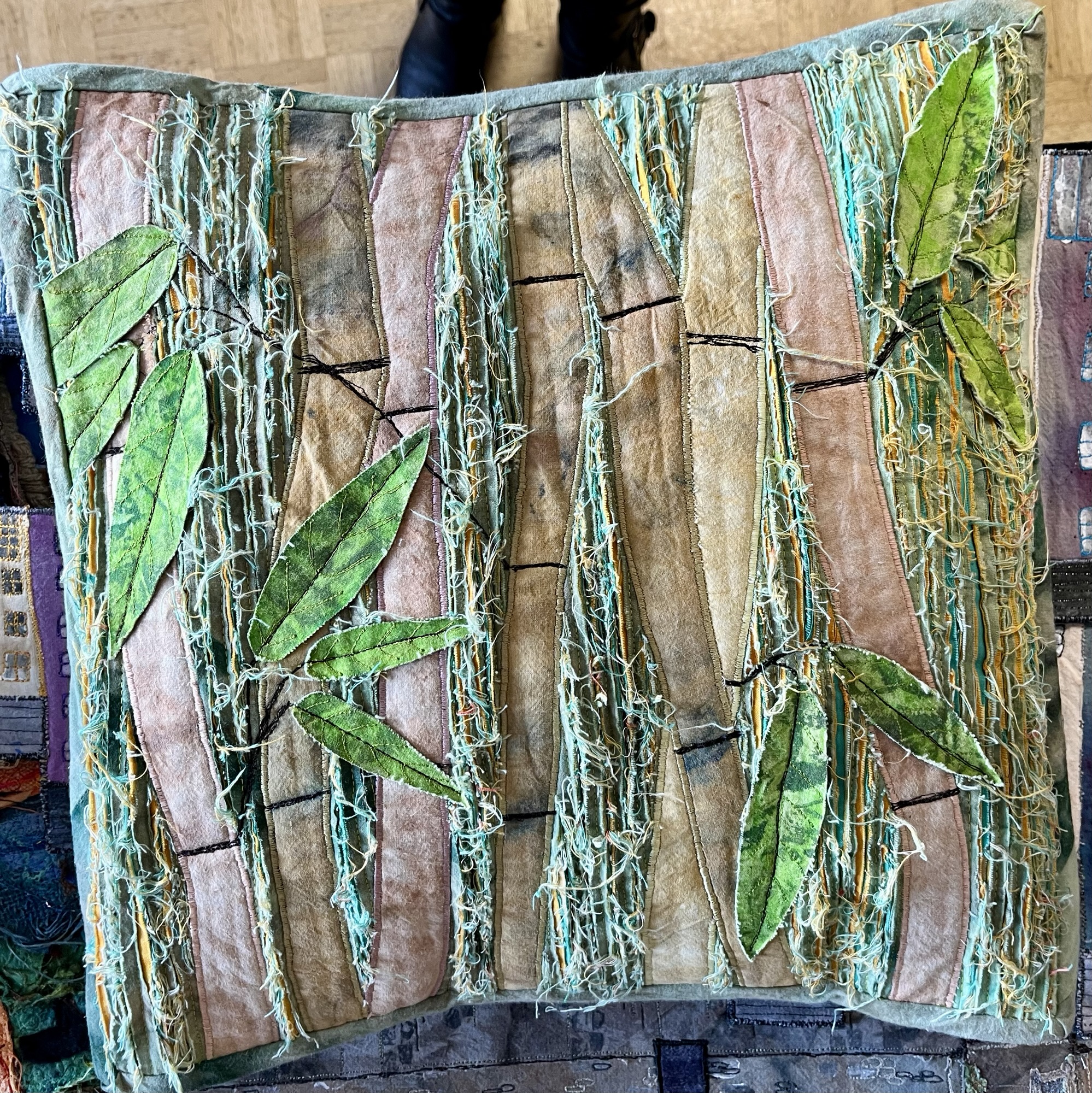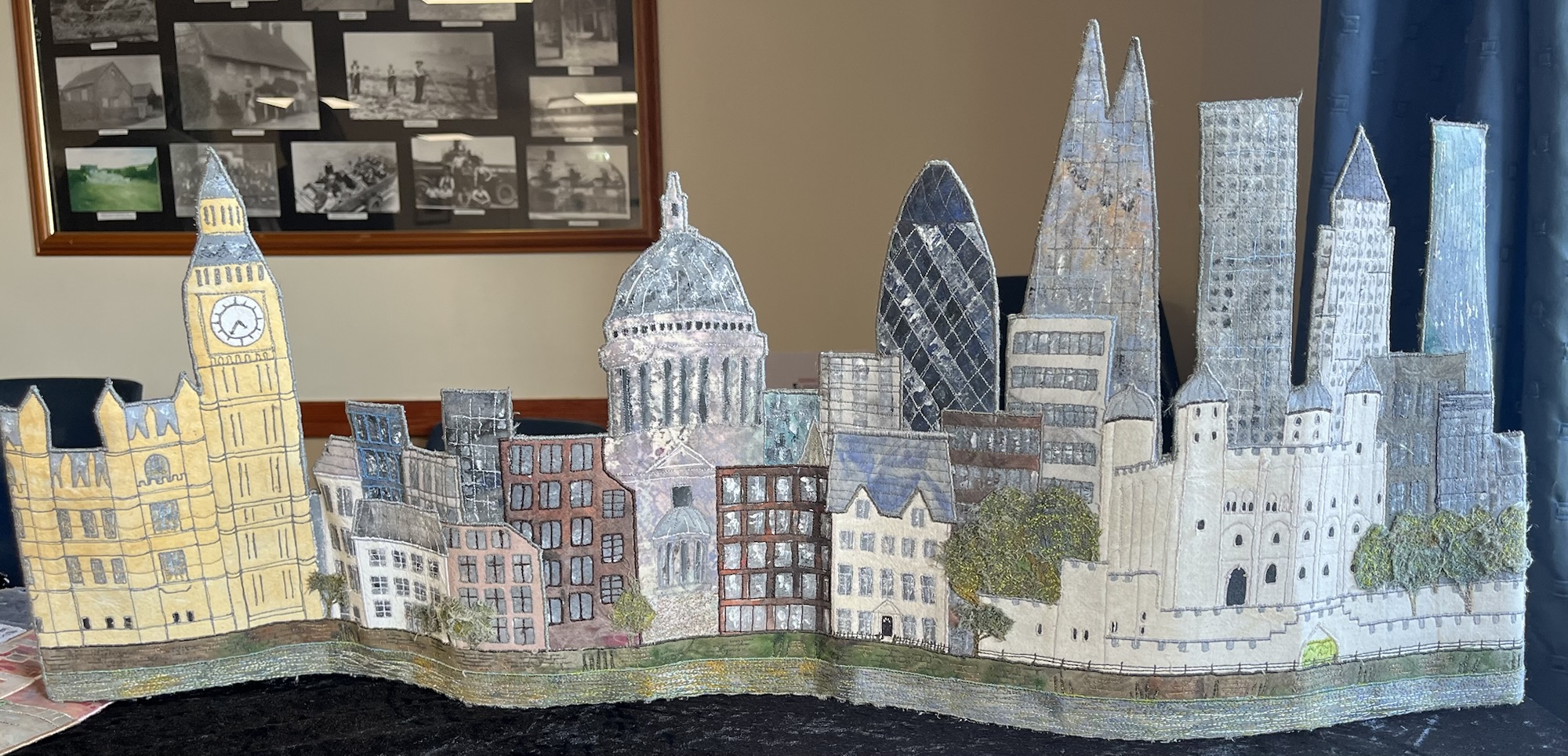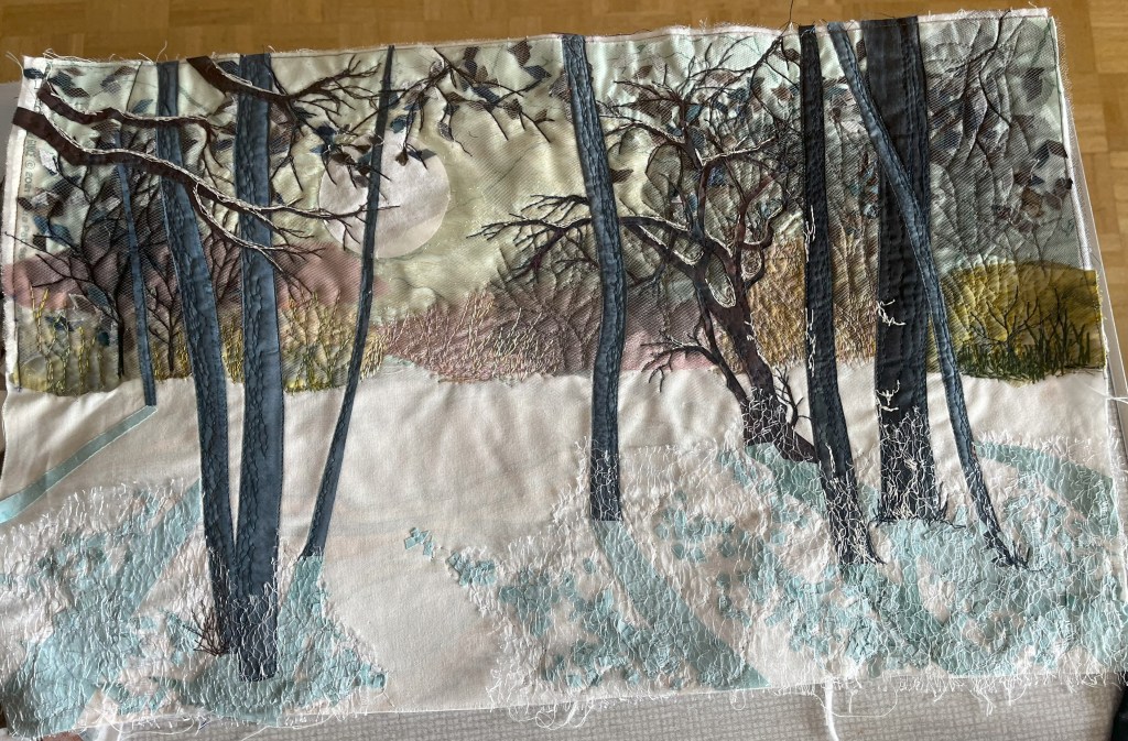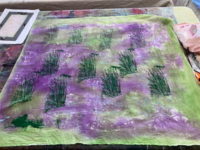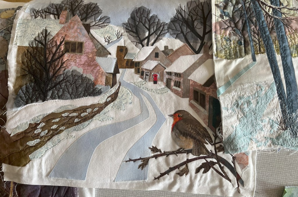 Anne is an artist who creates hand-painted textile art by combining paint and textiles with free machine embroidery. She gave us a fascinating talk and brought along some of her stunning pieces to inspire us!