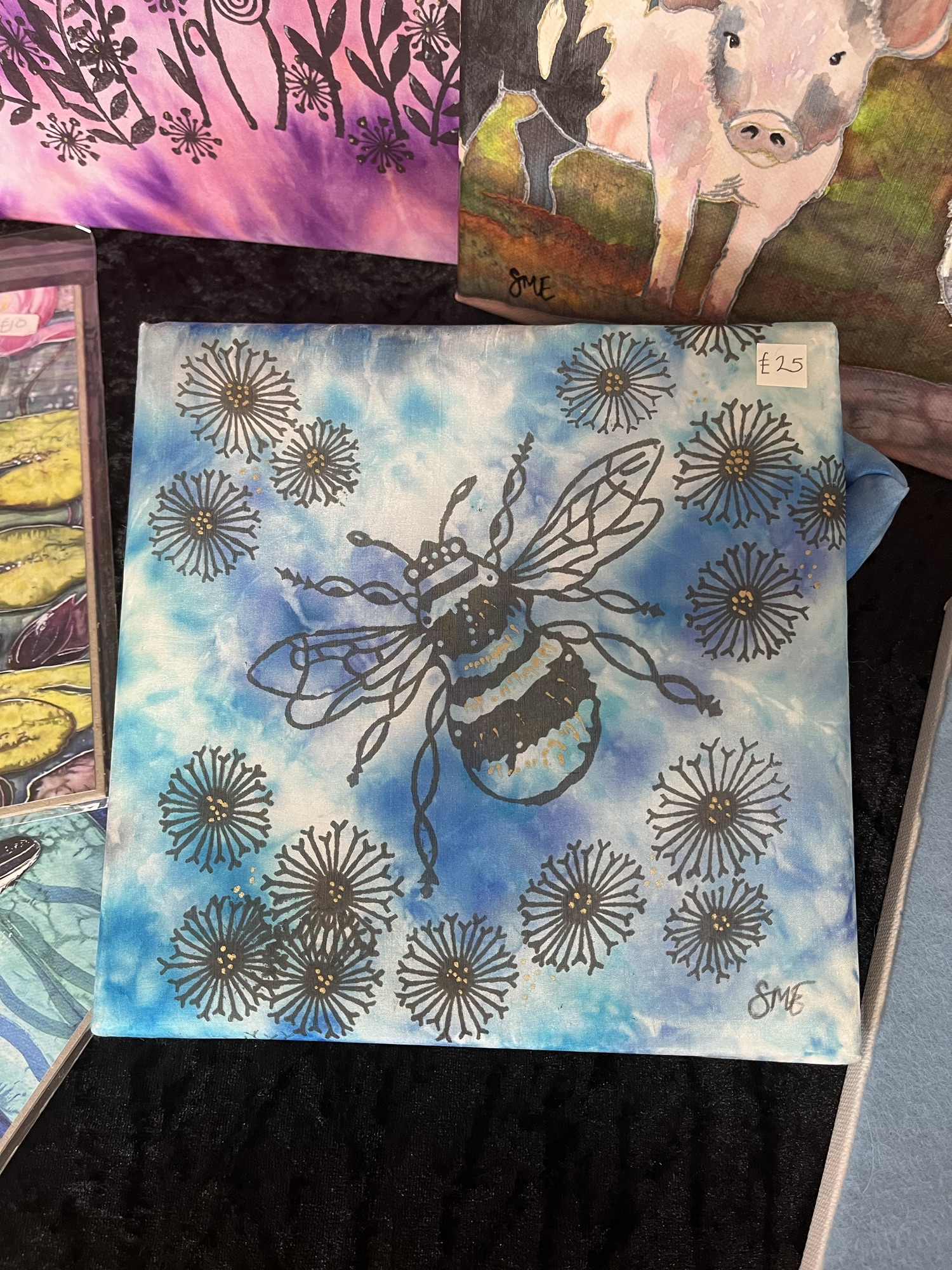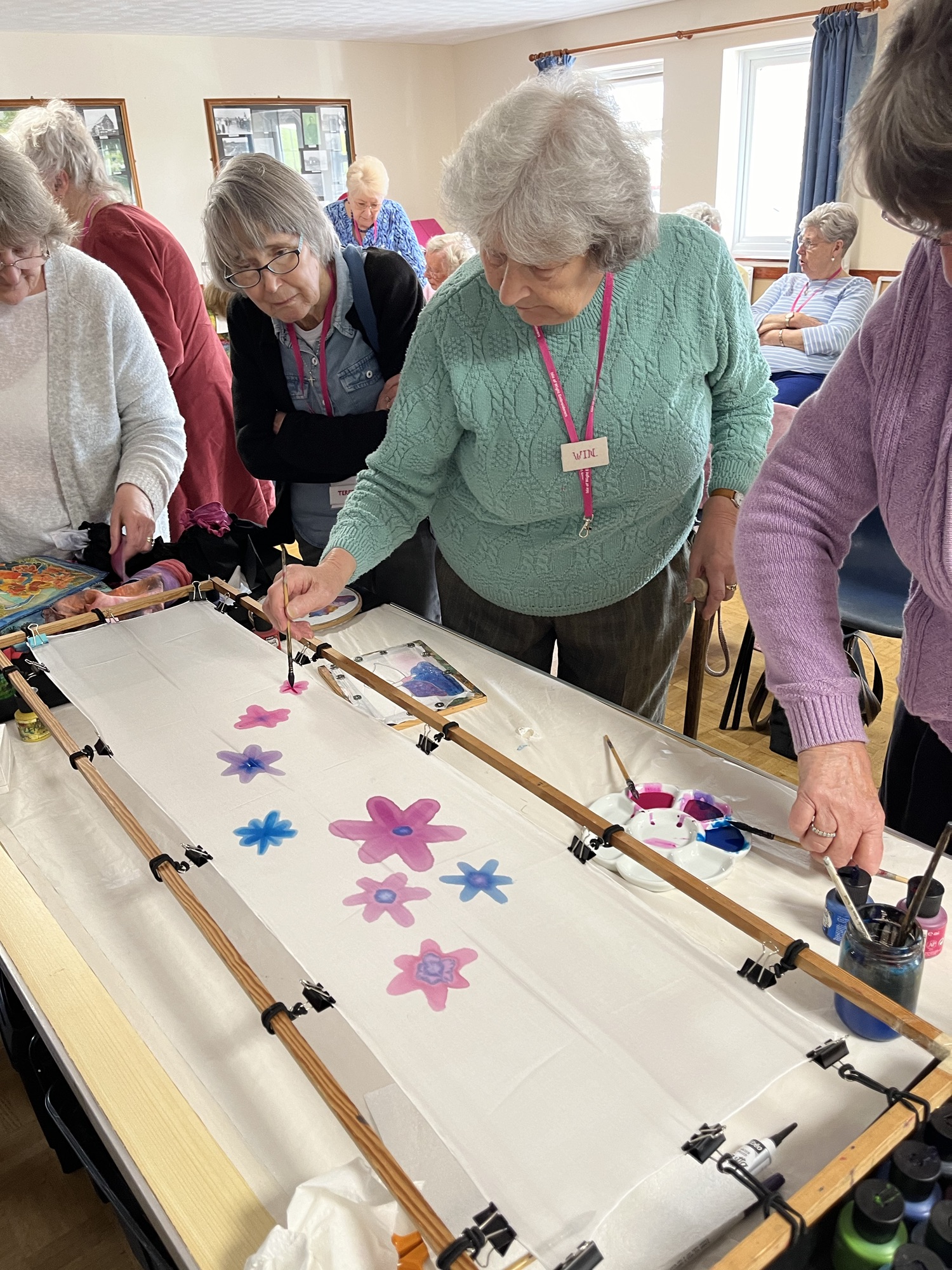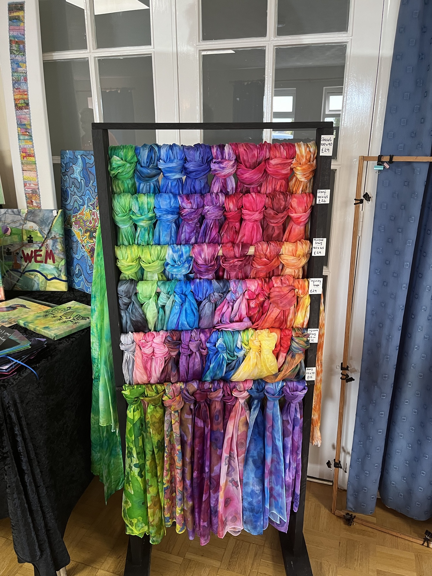 Sarah Evans is a talented artist who specialises in painting on silk. During her visit, Sarah shared insights into her craft, showcasing a stunning array of samples that captivated us all.