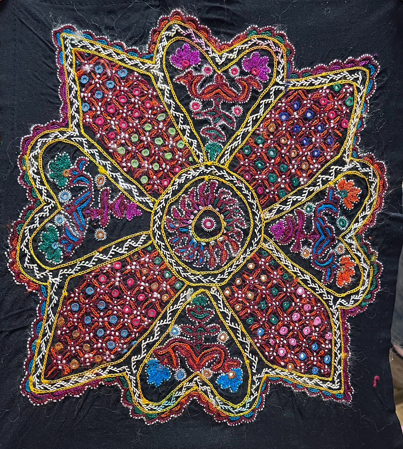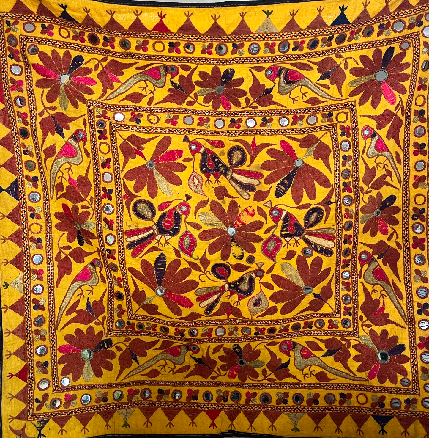 Helen is an artist, researcher and tutor. She combines her love of drawing and travelling with textiles. She gave a fascinating talk entitled ‘Gujaret Journey’ and enthralled us with the stunning textiles she brought along from her travels.