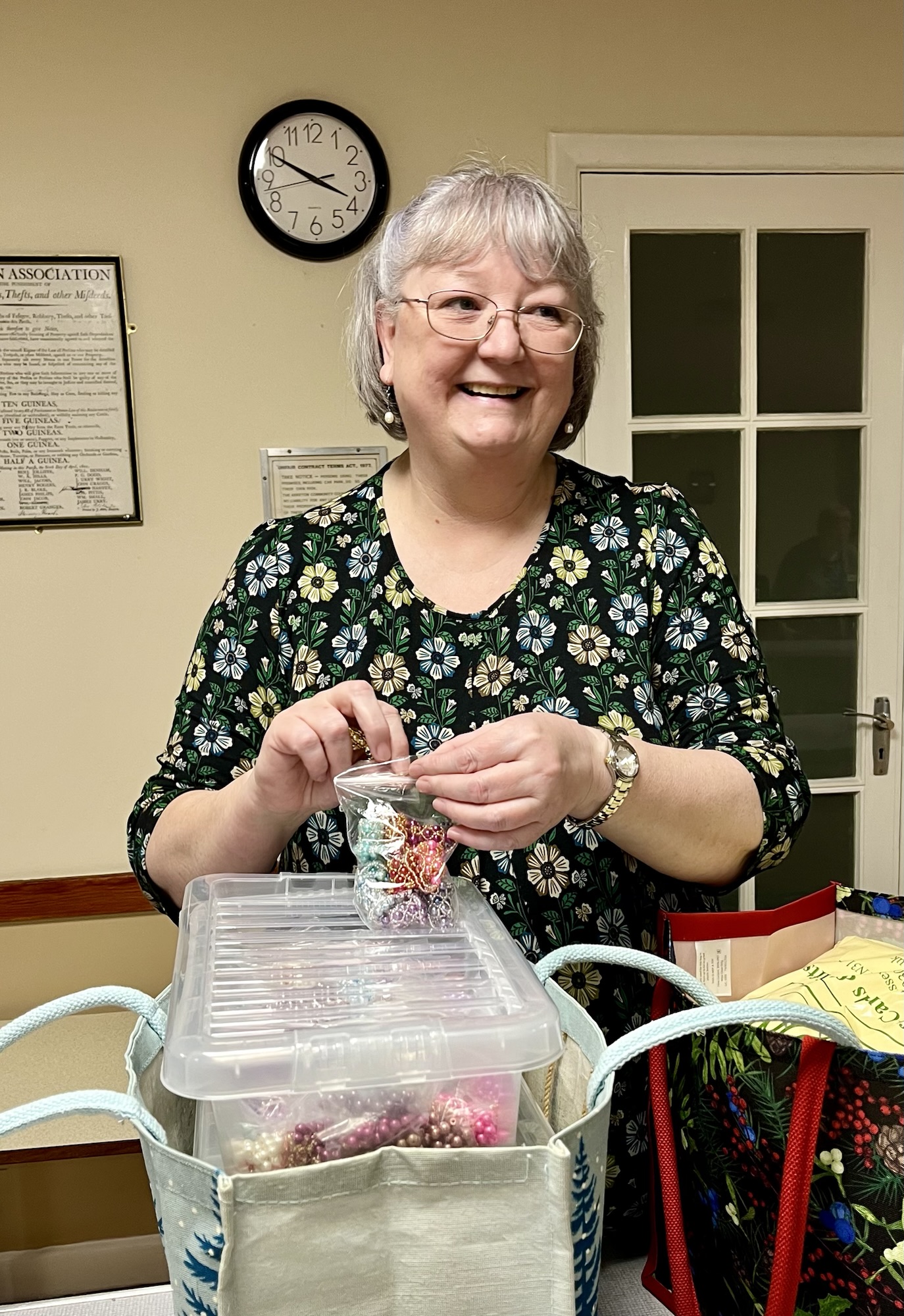 Shelly led a brilliantly challenging workshop, teaching us how to create a dazzling beaded bell Christmas decoration. While her instructions were exceptionally clear and her patience infinite, it quickly became apparent that this project wasn’t for the faint-hearted, or for those of us expecting to finish in one sitting! Hopefully more pictures to follow as we master our bells for homework and in time for Christmas!